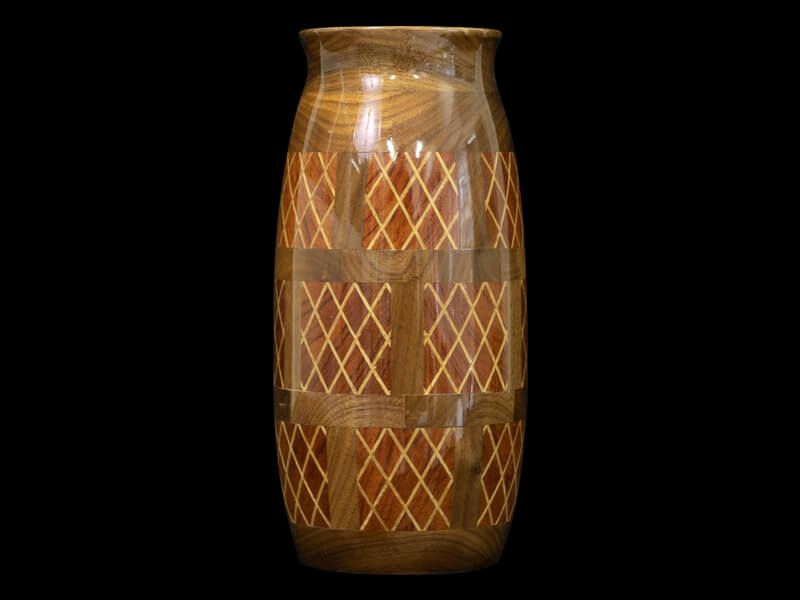 以星星形狀的紅花梨木拼接和六邊形的加拿大檜木,以拼接技法組合而成的木盒子為,簡省木材又不浪費木材的精美拼接創意作品。三個平行四邊形組合成六邊形、六個平行四邊形從頂點向環列組合可以變成星星形狀。盒子從外部到內部都以拼接組合的板材製作成,讓盒子全身被紅色星星和猶如黃金閃亮的黃色六邊形纏繞著,使盒子看起來如有夢幻似的紅色黃色組合視覺衝擊。