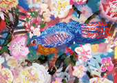 熱情活潑躍動的筆觸、鮮明奔放隨性的色彩,具深度的構圖,亂中有序完美的均衡,形態具抽象的表現特質,是花非花,更顯哲思。作者以大師成熟的身手,悠遊自得的創造活力,指揮爭奇鬥艷的花朵,高唱春天那關不住的喜悅,歌頌出生命與人生的美好,作品有著令人目不暇給的興奮。